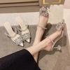 2024 2024 Summer New 2024 Sexy High-heeled Slippers Women Pointed Crystal Heel Women's Designer Sandals Square Buckle Slides Women