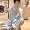 2025 Frühlings- und Herbstpyjama mit Brustpolstern Damen-Pyjama-Set aus Bambus-Jacquard-Spitzen-Cardigan mit einfachem Temperament, zweiteiliges Nachtwäsche-Loungewear-Set