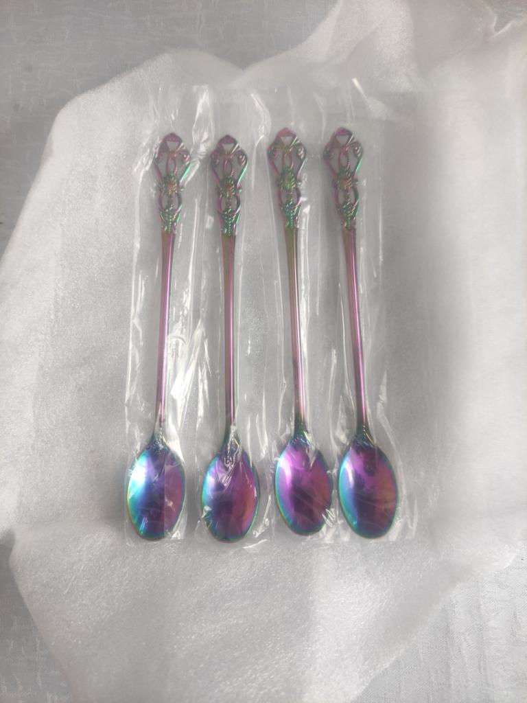 4Pcs Juice Coffee Stirring Cutlery Set Vintage Colorful Teaspoon Dinnerware Ice Cream Long Handle Scoop Tableware Kitchen Tools