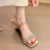 Delicate Ernie! Temperament square head rhinestone with two words, wearing wedge heel sandals women's summer open-toed sandals