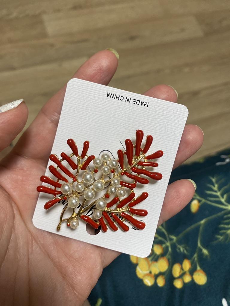 Móda Ženy Červený Smalt Pearl Javor Korál Brože Kostýmní klopa Šperky Dárek