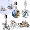KATAOKA Fantasy Fairy Tale Princezna kočárek Nebesky modrá Smaltované korálky 925 Sterling Silver Fit Original Charm Náramek Šperky