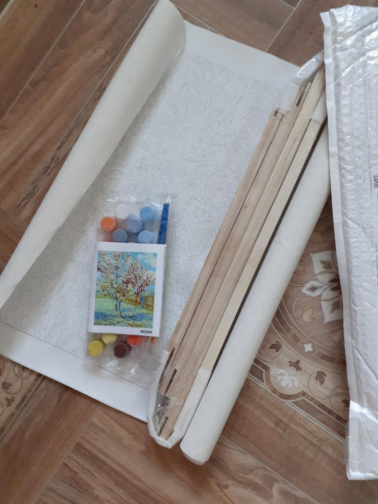 Balení obsahuje: Lněné plátno; 3 kartáče; 1 sada akrylové barvy; Vykreslování produktu