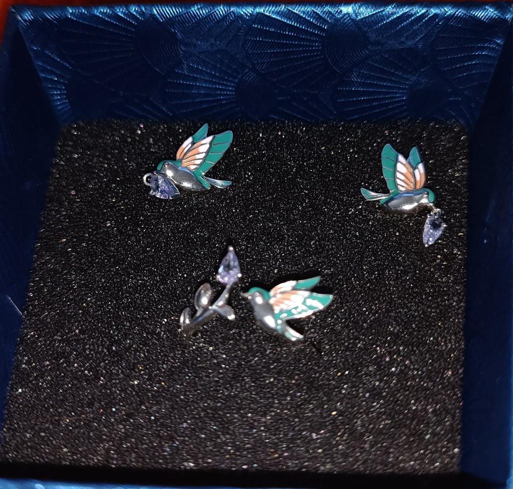 Bamoer 925 Sterling Silver Kingfisher otevřený prsten a náušnice Kingfisher Barevné smaltované šperky Sada šperků pro ženy Dárek