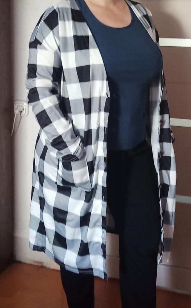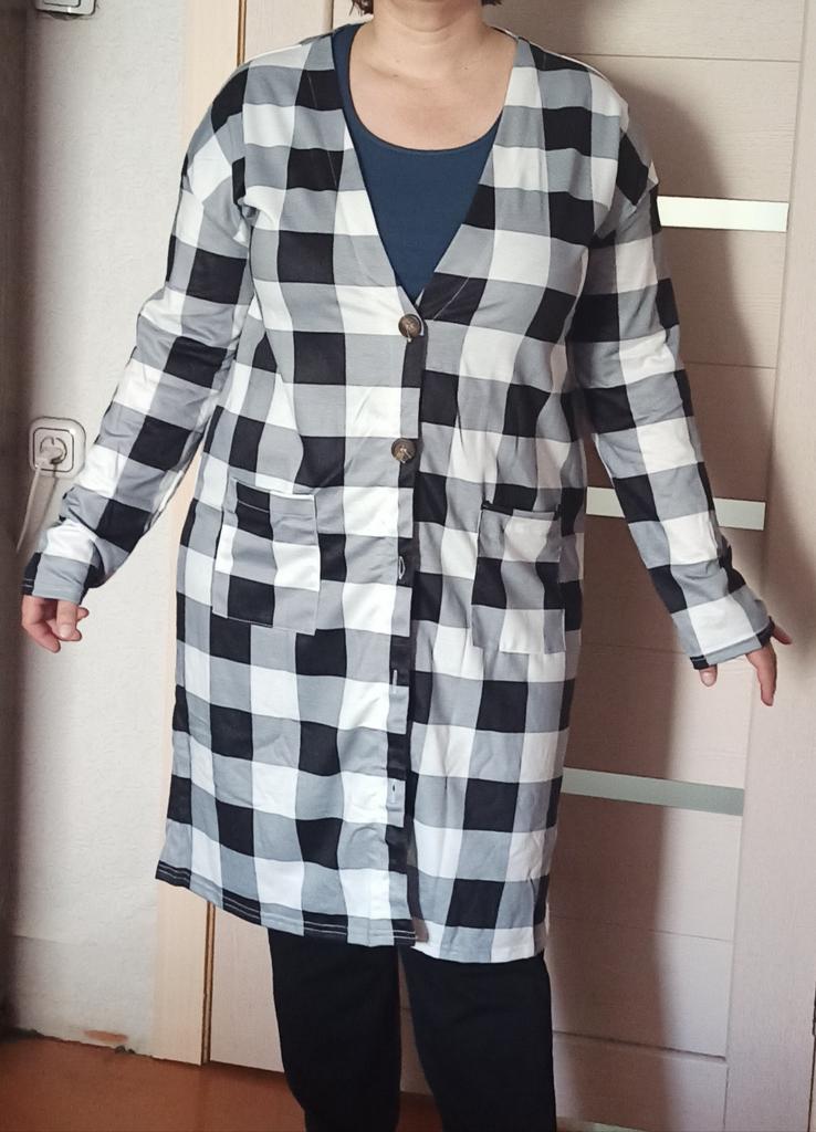 Jarní a podzimní evropská a americká móda Dámský volný kostkovaný kabát s potiskem na knoflíky, svetřík, svrchní kabát