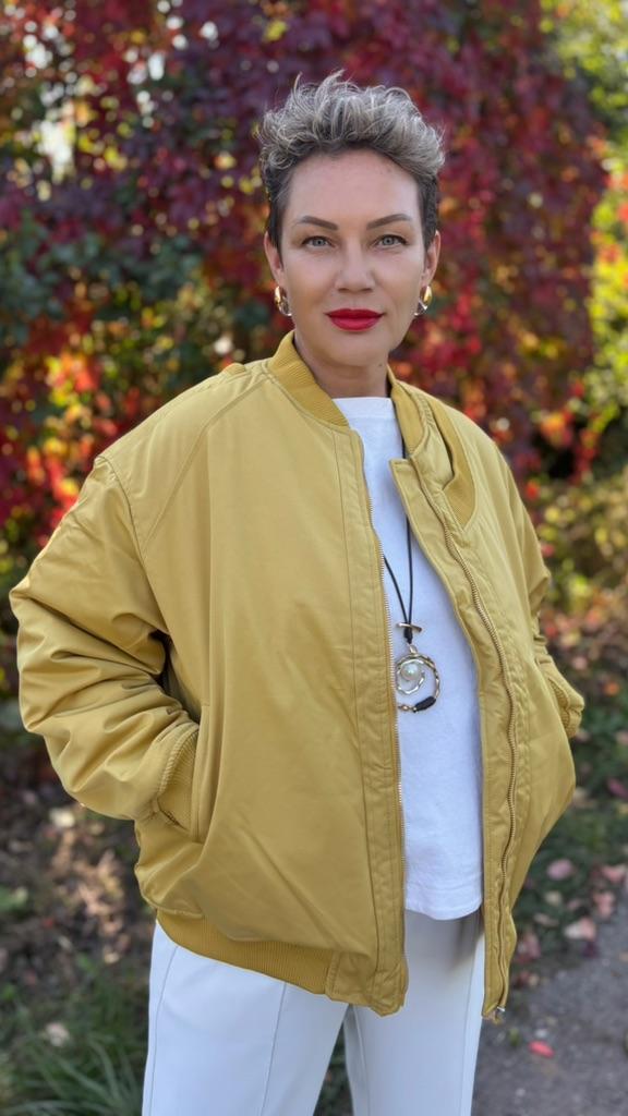 Dámská zimní baseballová bunda s bavlněnou výplní a oversize střihem