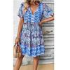 Summer Women's V-neck Short Sleeve Floral Print Dress High Waist Slim Breathable Lightweight Dress Casual Fashion Plus Size Commute Mid Dress