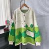 Flower Print Knitted Cardigan Jacket Women Loose V-neck Autumn Single Breasted Cardigans Sweater Winter Tops Long Sleeve Vintage Crop Knitwears 24928