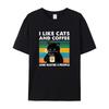 Cat & Coffee Print Cotton T-shirts Casual Crew Neck Short Sleeve T-shirt, Women's Clothing