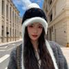 Hat Women'S Big Head Circumference Knitted Wool Hat Winter Warm Thickened Plush Hat Versatile Contrasting Color Ear Protector Cold Hat