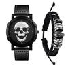 Náramek s kostrou hodinek Sada rockového punkového koženého řemínku Hodinky z nerezové oceli Vodotěsné Analogové Quartz Lebka Gotický doplněk Narozeniny Štědrý den