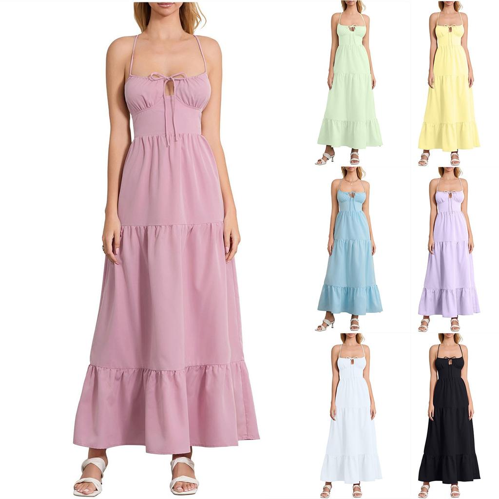 Women's Strappy Backless A Hem Temperament Casual Vacation Dresses