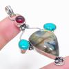 Natural Mariam Jasper, Turquoise 925 Sterling Silver Jewelry Pendant 2.17" G8K08