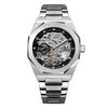Skeleton Stylový 3ATM Vodotěsný Luminous Analog Calendar Nerezový řemínek Hodinky Módní hodinky Narozeniny Štědrý den Den Dárek Pánské hodinky Pánské