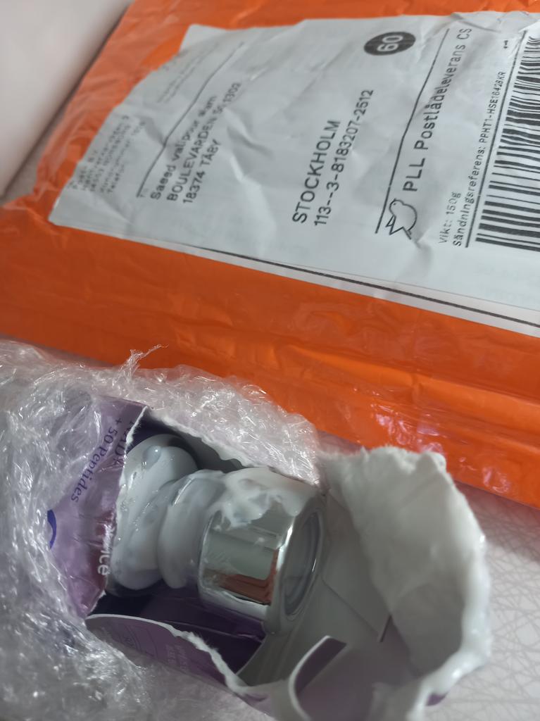 I ordered this product, but it arrived late, and when it did, the packaging was torn, the container was broken, and the serum had spilled inside