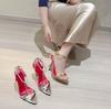 New Women's Sandals Colored Water Diamond Flower Thin High Heel Open Toe Classic Gold Banquet Shoes