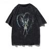 Women's Oil Painting Style Cute Angel Print T-Shirt, Loose Oversized T-Shirt, Wash Short Sleeves Trendy Brand Tee