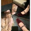 French Mary Jane gold coin rhinestone small single shoes 2024 autumn new retro golden velvet low heel versatile women's shoes square head