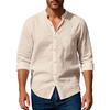 Spring Autumn Fashion Stand Collar Shirt For Men Vintage Solid Color Breathable Linen Tops Mens Clothes Casual Long Sleeve Shirt