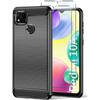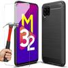 Coque pour Samsung Galaxy A12 / M12 + 3X Protecteur D'écran en Verre Trempé, Fibre de Carbone Silicone Souple TPU Housse Etui Coque