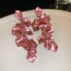 Rose petal earrings exaggerated fashion long fringed earrings women's high-end temperament versatile earrings