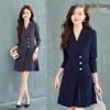 Elevate your professional wardrobe with this sophisticated double-breasted suit dress, designed for the modern woman. Perfect for spring and autumn, this mid-length dress offers a sleek and polished look, ideal for high-end professional settings. Crafted from quality polyester, it provides both comfort and elegance. The classic gray color and tailored fit combine timeless style with contemporary chic, making it a versatile addition to any workwear collection.