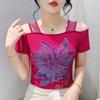 Fashion Women’s Mesh Bling Butterfly T-Shirt Clothes Sexy Off Shoulder Luxury Hot Diamonds Tops Summer Short Sleeve Female Tees Blouse