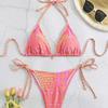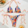 Experience a blend of style and allure with this exquisite bikini swimsuit, designed specifically for women. Crafted from high-quality polyester, the swimsuit offers a comfortable and slimming fit. It features a striking print and a captivating backless design, enhanced by a bandage style that accentuates your curves. The triangle bikini top adds an edgy and contemporary vibe, making it a perfect choice for any beach or poolside outing.