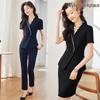 This elegant and professional women's formal business suit set features a chic skirt uniform, perfect for a polished look in the office, reception, or hotel front desk setting. Crafted from high-quality polyester, this suit offers durability and comfort, ensuring you stay stylish and at ease throughout the day. The design embraces a timeless silhouette that enhances confidence and poise, making it an essential addition to any professional wardrobe.