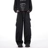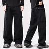 Unisex Vintage Black Distressed Wide-Leg Workwear Jeans with Multi-Pockets - High Street Punk Style