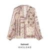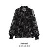 Elevate your spring wardrobe with this European-American style versatile organza print top. Crafted from high-quality polyester, this top is both stylish and comfortable, perfect for a range of occasions. The striking color block pattern adds a touch of contemporary flair, while the long sleeves provide elegance and coverage. Featuring a unique tailored neckline, this top is designed to enhance your silhouette and complement various outfits. Whether you're dressing up for a special event or adding a chic touch to everyday wear, this top is a fashionable and versatile addition to any closet.
