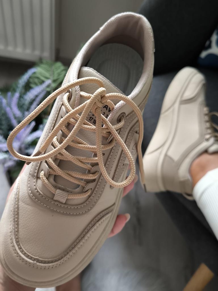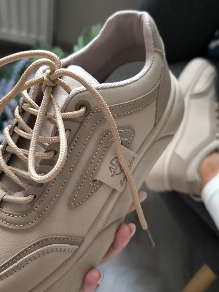 Skvělé tenisky Barva je krásná - kapučíno, kvalita dobrá, bez jakéhokoli cizího zápachu. Velikost 39 skvěle seděla na chodidlo 24,5 cm. Na nohou vypadají velmi dobře. Doporučuji.