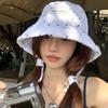 Sweet and cute love lace-up bucket hat women's summer big brim sunscreen basin hat show face small hat