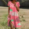 Short Sleeve Boho Dress For Women Casual Loose Fit Summer Sundress Feathers Print Dress With Pockets