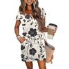 Dámské letní šaty s výstřihem do V, krátkým rukávem, stahováním v pase, kapsou a květinovým potiskem