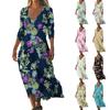 Dresses For Womens Vintage Print Tunic Waisted Midi Dress Summer Casual 3/4 Sleeve Dress