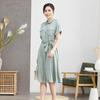 Summer new fashion design sense simple temperament short-sleeved Tencel dress waist thin belly long skirt
