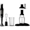 Цвет: Черный, нержавеющая сталь Емкость: 500 мл Дисплей: нет Уровни скорости: Да Режим работы: питание от сети (1,2 кВт) Материал: металл (основание блендера), нержавеющая сталь (лезвие) Комплект поставки: 1x контейнер блендера (500 мл), насадка-измельчитель, насадка-кухонный комбайн, режущий диск, терочный диск, диск для шинковки, венчик, насадка-блендер