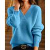 Dámská módní jednobarevná pletená košile s výstřihem do V, svetr s dlouhým rukávem, svetr