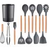 Cooking Utensils Kitchen Utensil Set, 12 PCS Wooden Handle Nontoxic BPA Free Silicone Spoon Spatula Turner Tongs Kitchen Gadgets Utensil Set for Nonstick Cookware with Holder(Light Green, 12)
