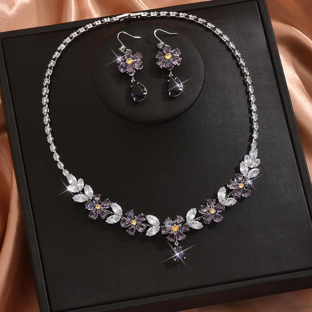 3PC Women's Fashion Zircon Flower Mystery Necklace Earrings Zircon Set Design Sense Daily Wear Festival Gift