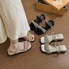 Coarse heel French small cool slippers fairy shoes outer wear 2025 new summer skirt Roman shoes rhinestone sandals