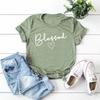 Blessed Letter Cotton T-Shirt Short Sleeve Round Neck Women 2d Print Tops