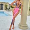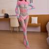 Sexy underwear female sexy gradual change pink long sleeve open gear hollow tight net clothes perspective one-piece