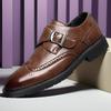 Fashionable Block Leather Shoes Spring/Summer Men Business Dress Buckle Thick Sole Increase Comfortable Round Head Leather Shoes