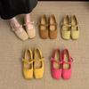 Square head shallow mouth single shoes women's spring new retro fairy gentle Doudou shoes women's flat yellow ladyshoes