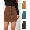 Solid Color Buckle Belt Pocket Waist Skirt Solid Buckle Sheath Skirt