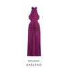 Kaslead New Arrival Women's Clothing Fashion Style Fashion Hanging Collar Silk Satin Texture Length Dress 8739331