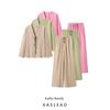 Kaslead New Arrival Women's Clothing Fashion Style Fashion Minority Design Long Sleeves Feather Coat Casual Pants Suit