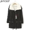 BITCED Autumn/Winter Detachable Fur Collar Women's Parka Long-Sleeved Hooded Cotton Coat Fleece Overcoat